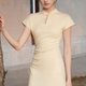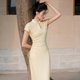 - 【甘草黄】新中式复古中国风 立领收腰针织洋裝