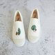 - 100%纯棉布后加工防泼水处理, 让小白鞋也能好清洁~ 专利的QQ底台 - 可支撑身体重量, 久走不累! 舒适的宽楦, 适合台湾人的脚型, 回购率超高❤ 尺寸: 36~40 左右脚不同图案, 小红帽与大野狼在龟背芋后面躲猫猫。