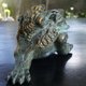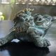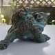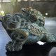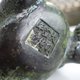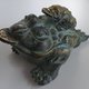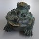 这件铜鎏金“母子三脚蟾蜍”摆件,表面镀铜鎏金有部份脱落,金蟾经过岁月的洗礼,表面已呈现出自然的铜绿色,这种铜绿在时间的沉淀下形成了一层厚厚的氧化层,仿佛是历史的印记,铜绿色的出现不仅赋予了“母子三脚蟾蜍”古朴的气息,也使得整件作品在光线下展现出一种古典且温润的光泽。综观此件作品呈现出自然的曲线和质感,神韵栩栩如生,眼神生动有神,肌肉比例协调,三维立体效果突出,使得整个作品看起来立体感十足,整体造型神韵俱佳。三脚金蟾为财神,呈三足,走一步,能吐一枚铜钱,古时认为得之可致富,此摆件造型为大金蟾背小金蟾,寓意“财上加财、财源滚滚”。铜质精良,表面包浆自然,底款“大明宣德年制”。个人判断应是民国时期作品,制作工艺精美漂亮,寓意财源兴旺,幸福美好之意,值得收藏,让“母子三脚蟾蜍”陪伴您,开创财富新境界!