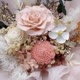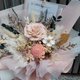 .花材包含永生玫瑰、索拉玫瑰、索拉太阳花、兔尾草、蓬莱松、卡斯比亚、罗丹斯、小满天星、尤佳利…等等。