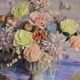 以**蓝紫色**画布为底,轻轻托起各式花材的温柔姿态。