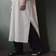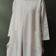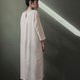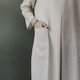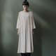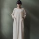 - 米白色下摆开岔口袋九分袖亚麻洋装