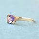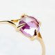 此款K10戒指,镶嵌了色泽鲜艳、紫韵迷人的玫瑰式切割紫水晶。宝石表面经24个切面精心打磨,光线折射之下,闪烁着动人光彩。紫水晶亦是二月诞生石。