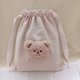 纯棉麻色可爱小熊束口袋收纳袋手机袋
