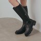 - 双材质拼接非常显瘦小腿肚 整双皮质极度软 略松的筒围更显舒适 防水鞋底雨天也可以奔走 有气垫鞋底舒适