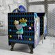 办公室和小东西的魔术台装饰着爱丽丝梦游仙境的插图,剪纸技术,涂有丙烯酸涂料,装饰有彩色玻璃带和涂有底漆的纸板和聚合物粘土的三维细节,有一个装有药水的瓶子,一个用于笔记的衣夹和所有门的魔术钥匙。 很多小细节。 连脚都有眼睛。
