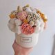 温柔的粉橘色调,白色盆器搭配圆鼓鼓棉花与进口法国白梅等,也适合当祝贺盆花!