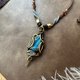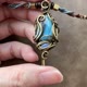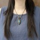 使用拉长石及月亮石,配以纯黄铜线,以绕线方式手作而成, 然后再加上复古做旧效果, 再抛光处理令花纹更具深度和对比.