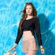 曼妙优雅长袖短身 / 侧绑带二截式 / 赠泳帽