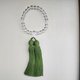 被誉为万能之石,自古以来便用于仪式与祈祷的水晶,此为仅用单一水晶串连而成的念珠。 宝石选用巴西产的水晶。 搭配日本国内工坊手工制作、色彩鲜艳的流苏。 附有木制外盒及手工制作的坐垫。 无论是巡游神社寺庙、参拜,抑或参加法事等场合, 请将其作为护身符,陪伴您心灵的旅程。 宝石:天然水晶 主珠(亲玉):10mm 主珠(主玉):8mm 副珠(二天玉):6mm / 128面圆形切面 流苏:人造丝(柳)
