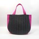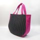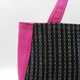 包款正面表布为手织布,配色布、里布皆为薄帆布,此款配色布为桃红色。