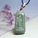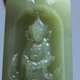 【描述】: 玉质温润,结构细腻,颜色清新。整体造型立体形象,观音仪态端庄,身披袈裟,高挽发髻,面目慈祥。整体风格简约,立体感十足,雕刻精湛;观音是佛教中慈悲和智慧的象征,有求必应,降福世人。