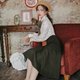 - 简单基础的衬衫款式,加上了绿色藤蔓花卉,和橘色花朵点缀的印花图案,显得清新有很典雅