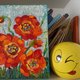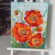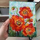 红色罂粟花画,原创油画,拉伸画布,尺寸为 24x18 厘米,由当代拉脱维亚艺术家 Inna Bebrisa 手工制作。