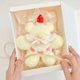 蓬松柔软的毛皮,头上点缀着一顶草莓鲜奶油帽,肚子上还有爱心和奶油,这些都是它的迷人特色。
