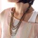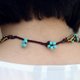 这是手工编织的项链与棕色彩色尼龙线编织在一起的绿松石石头和黄铜珠。关闭使用红色aventurine石珠
