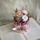 由不凋玫瑰、棉花、索拉花以及其他花材搭配。(缺少时会更换使用其他花材代替。)