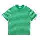 立体小口袋的撞色缝线和金属K字母点缀,改变了条纹带来的中规中矩风格。