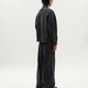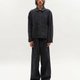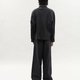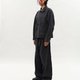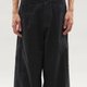 以重磅染洗褪色面料制成,经特殊水洗处理后展现自然的复古旧化质感。版型采宽松轮廓为基础,介于直筒与A字之间,透过厚实硬挺的布料结构,于裤脚底部加入收褶设计,使整体在宽阔线条中仍保有俐落感与份量平衡。