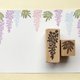 【印章木头尺寸】 紫藤花:纵 4.5cm × 宽 1.8cm 叶片:纵 2cm × 宽 1.8cm 参考照片中的卡片为明信片大小。