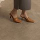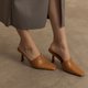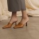 - 复古尖头 胎牛皮细跟拖鞋 棕