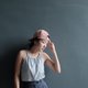 Sleeveless round neck top. Features an adjustable bow tie opening in the back with matching fabric drawstrings.