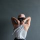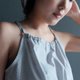 - Sleeveless round neck top. Features an adjustable bow tie opening in the back with matching fabric drawstrings.