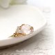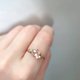 这是一款以淡粉色蔷薇石英为主角,点缀着白色拓帕石与淡水珍珠的线戒。
