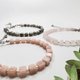 品 名 925银珠x天然石方珠手串 网络石粉晶粉红蛋白石3选1 延长链 可调式手围