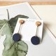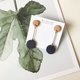 双面贴合皮革包覆耳针,下方搭配黄铜与皮革坠饰,简单几何造型更添质感。