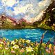 宁静的山脉风景,画布上的原创纹理油画,湖泊和山脉绘画,花卉油画,家居装饰