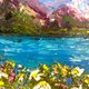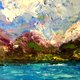 宁静的山脉风景,画布上的原创纹理油画,湖泊和山脉绘画,花卉油画,家居装饰 画布板上的尺寸为 30/40 sm,如果您想要不同尺寸的类似画作,请与我们联系。