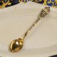 - 西班牙TOLEDO古董,大马士革工艺,冠形装饰金色小汤匙,24K/18K金/纯银 金属镶嵌工艺