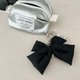 这是“双丝带钥匙圈_黑色” 那个丝带装饰以一颗迷你金属心为点 :) 布料:棉30%+聚酯纤维70% 宽度:10厘米 高度:13厘米
