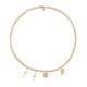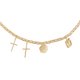 这款短项链以高抛光的金工方式,吊坠排序有不对称魅力。 链上的十字架与吊坠是四个元素的象征:火,水,空气和地球。