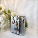 The storage holder is made in decoupage technique, made of wood. The organizer is framed by three-dimensional elements and handles.