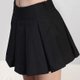 ボックスプリーツはプリーツの一种、プリーツの部分が箱状に折り込まれたもの。素材の使用量は一般プリーツスカートより多めにかかる。春夏スーツにも良く使われる素材を使う。ハイウエストミニスカート、里地はパンツが付いている。シルバーYKKサイドジップ付き。
