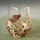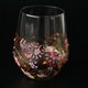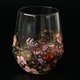 One of a kind hand painted and decorated stemless glass. Wild pig painting, and flowers and leaves in charming color. Decorated with crystal rhinestones in different matching colors.