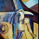 这幅画是用涂有丙烯酸底漆的帆布制成的。 用油画的。
