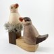文鸟是一种聪明乖巧的生物,常常会跳到主人面前歪着头好奇卖萌,与之对望那一刻,心就注定被它掳获。为了让木头能表现如文鸟这般灵巧,在颈部设计角度并搭配磁铁做组合,让文鸟能摆出各种面向,采用天然原木搭配木纹及原木色拼接而成,另外增加磁性底座,用于收纳回纹针等小型金属文具,形成筑巢的意象,为生硬的办公桌增添一丝疗愈。