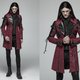 The Red Coat with elegant high collar, front zipper, decorated with rivets, buckles and PU leather straps.