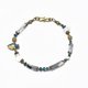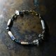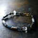 这款手链串连了带有眼状纹路的银化罗马玻璃、古董波西米亚珠、银化珠、民族风黄铜以及靛蓝色珠饰。