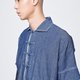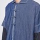 - 古感的盘扣结设计,搭配牛仔布料,布边不收边处理,双道线,细节的组合,搭配得宜,时髦感展现。