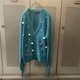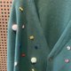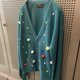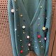这件是将素色毛衣重新改造,饰以复古数字钮扣和缤纷绒球,是独一无二的设计。