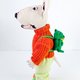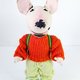 +++玩具有一个可移动的头部和手臂。 手臂内部有一个电线框架(它们可以弯曲,但次数有限)。 在腿部,身体和尾部也有一个电线框架。 扣眼缝上。