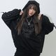 - “因是手工测量 会存在1-2cm误差 我们测量单位为cm” free size 品牌原创庞克风印花 质感缎带绑带+铆钉造型 OVERSIZE宽松设计男女都能穿