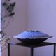 全手工拉坯成型,手压纹肌理,铁矿粗陶泥高温烧制,蓝色原矿釉料,斑驳沉稳,器型像飞碟又像一朵欲盛开的蓝色花朵。