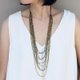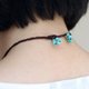 这是用棕色尼龙线与绿松石石和黄铜珠编织在一起的手织编织项链。使用绿松石石珠封闭