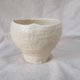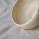 以瓷土手捏成形,暖米黄色手感温润,口缘保留盘条结束的小尾巴,碗型深、微缩口。