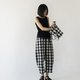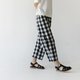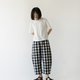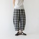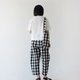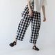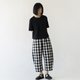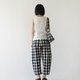 一件裤子花了将近2米布,面料单价又是普通的2倍。但压不住喜欢,就follow my heart,订了一卷,限量发售。松紧腰,弯腿裤型调整多次,特意减小臀围,移量至膝围,整体更显瘦。弯腿弧度微妙自然,与黑白格纹相映成趣,经典耐看。侧缝设口袋,搭配简单T恤就很出彩,还可搭简单上衣或衬衫,实穿单品推荐。整件包边工艺,套结固定。
